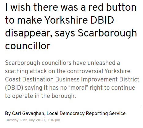 If you are a Councillor with HBC or NYCC reading this, the right thing for you to do by your Knaresborough constituents is ask your own Council to abstain from voting. Even if you support the idea of a BID, the decision really should be made by the businesses. If the BID is forced in by Council votes, do you really want to find yourself in the same mess as Scarborough Borough Council?