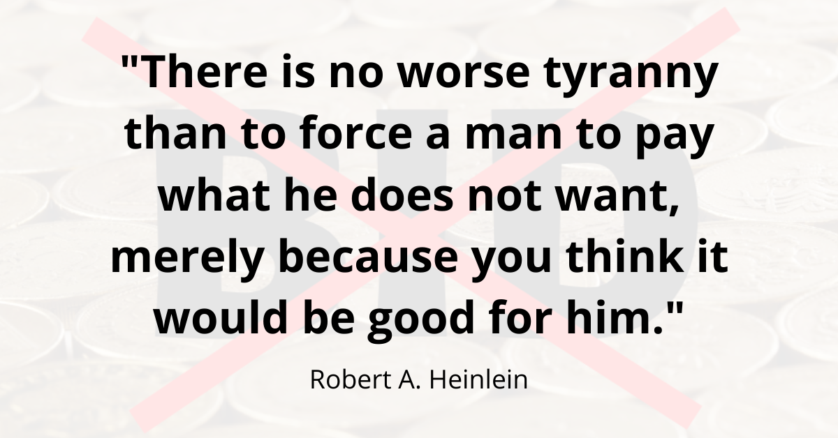 This applies so well to what the Taunton BID Steering Committe are attempting to do by trying to force in a private tax on all businesses, whether they want BID or not.