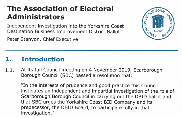 The Peter Stanyon report. This is the independent investigation initiated by Scarborough Council to look at it’s role in the DBID ballot.