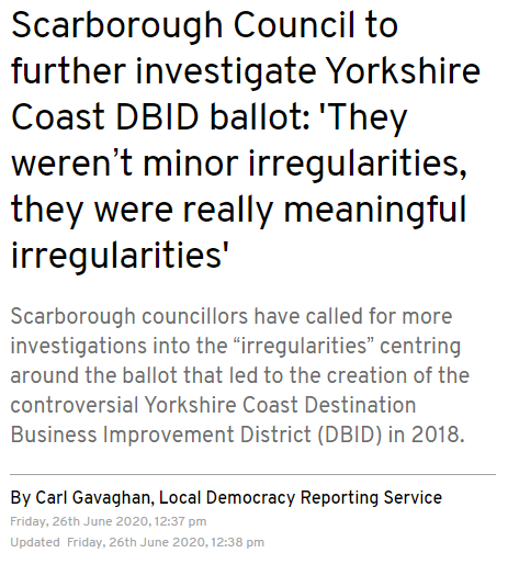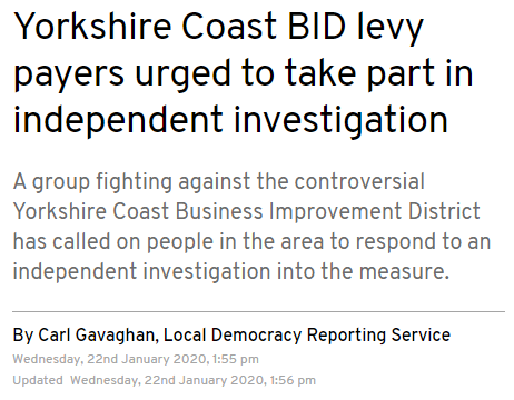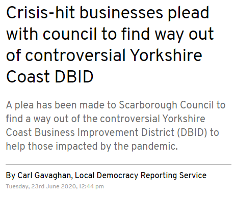 Let’s start with some press headlines, sets the scene well about what’s going on with the Yorkshire Coast DBID.